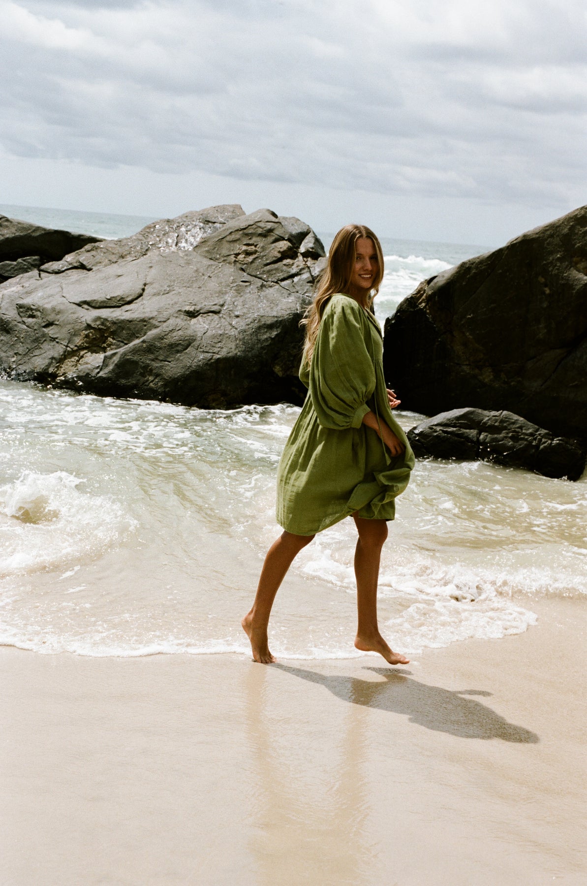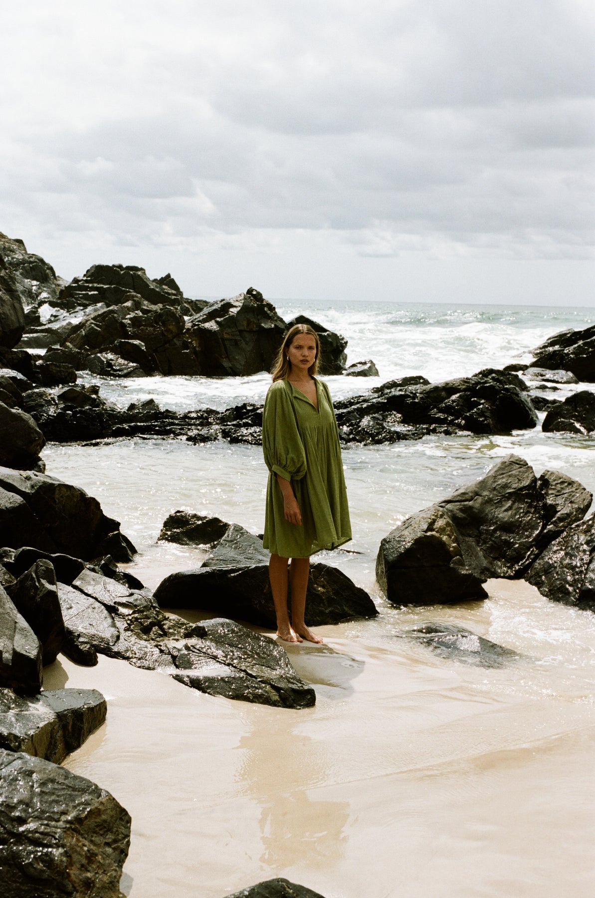 I haven’t worn this yet as I bought it in the winter sale. Looking forward to wearing it on holidays in Bali. The gauze cotton will be lovely and cook and dry quickly. I’m a size 14 and bought a large. Will look nice with tan sandals and tan bag! One of many DOI dresses I have bought and am never disapointed!